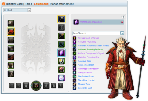 Simply go to the My characters page to fill a quick form to add your character instantly. Then click on the Edit link to provide all the information required about your character (identity, roles, equipment, planar attunement,…).